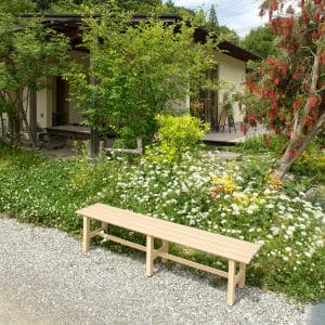 The Takasho Bench Seat is made of aluminium that has a Heat Transfer Coating. The plain aluminium is powder coated and then has a wooden pattern baked into the surface.