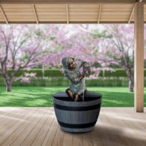 - Classic Sculptural Design – Water emerges from the girl’s watering can, and splashes straight into the barrel, creating the joy of a water spout along with the classical fountain sound, ideal for relaxation and stress relief.
