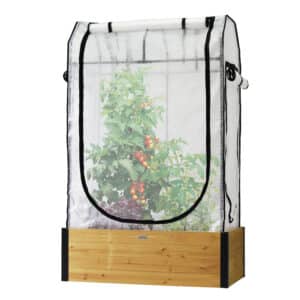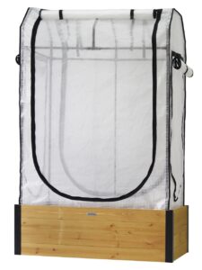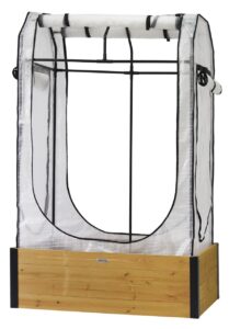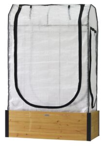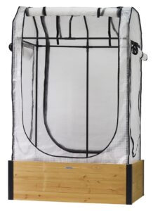 The cover frame is made from a durable, powder-coated steel, while the polyethylene greenhouse cover helps warm your plants in colder months, extending your growing season.