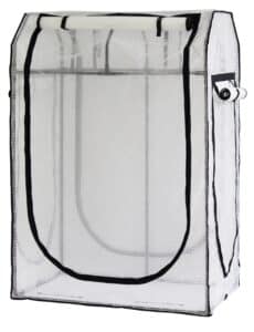 Cover: The greenhouse combines a polyethylene outer layer that traps heat with a micro mesh insect layer in a single cover. Each layer is zipped separately, with wide openings for easy access and maintenance of your crops.