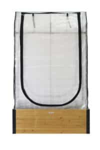 - Cover has multiple zip openings and can be completely closed (greenhouse mode), open but with micro-mesh protection (natural weather conditions, but bug-resistant) or completely open.