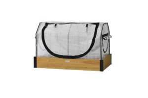 - Cover has multiple zip openings and can be completely closed (greenhouse mode), open but with micro-mesh protection (natural weather conditions, but bug-resistant) or completely open.