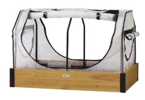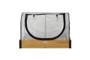 The cover frame is made from a durable, powder-coated steel, while the polyethylene greenhouse cover helps warm your plants in colder months, extending your growing season.