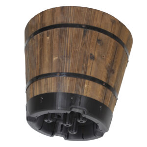 Our Barrel’s tough plastic base allows it to survive harsh weather that would normally cause rot in the base of a fully wooden barrel. The design of the base also lets us do more, allowing for aeration and drainage around the roots to promote strong, healthy growing.